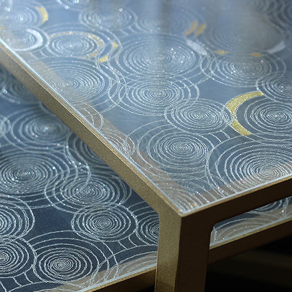 絹ガラスのネストテーブル【大】薄絹刺繍「渦巻」金彩意匠
