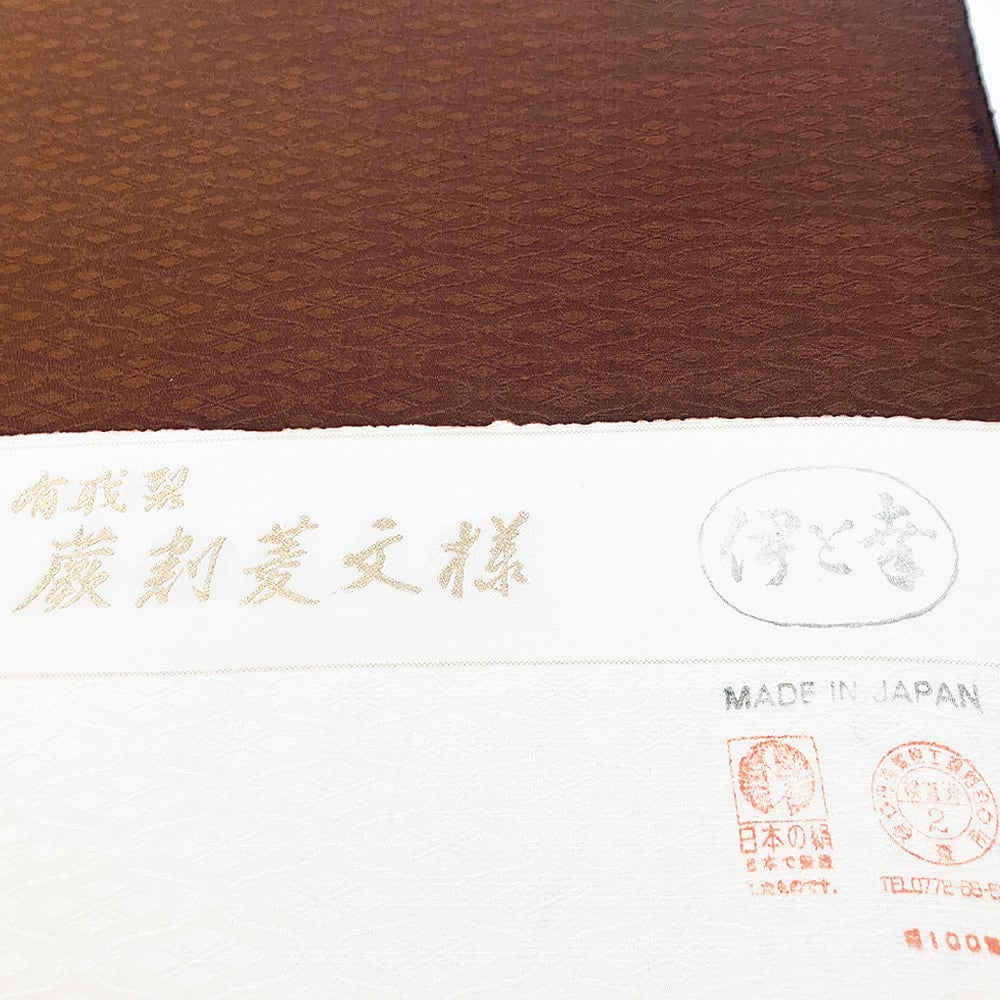 【1点限り】正絹反物(蕨割菱紋様/栗色)