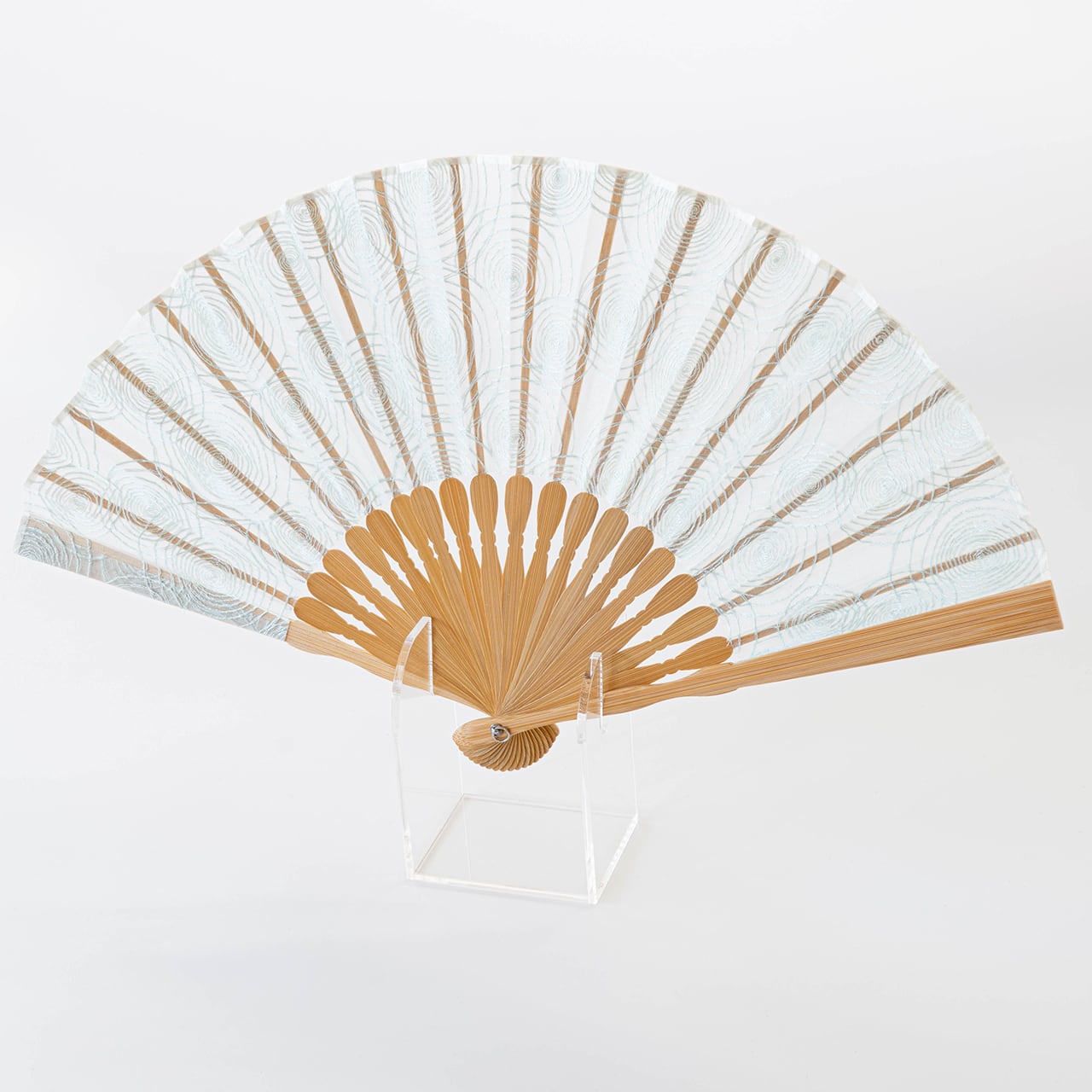 京都室町 白生地の老舗「伊と幸」が、着物で使用する絹織物から作った「透扇子(とうせんす)」。